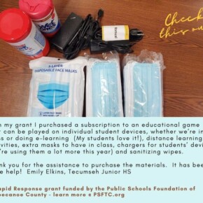 In August, as schools developed plans to reopen, the Foundation’s board allocated a portion of the grant budget to offer a new program – Rapid Response Grants – to help teachers address needs that arose from the pandemic.